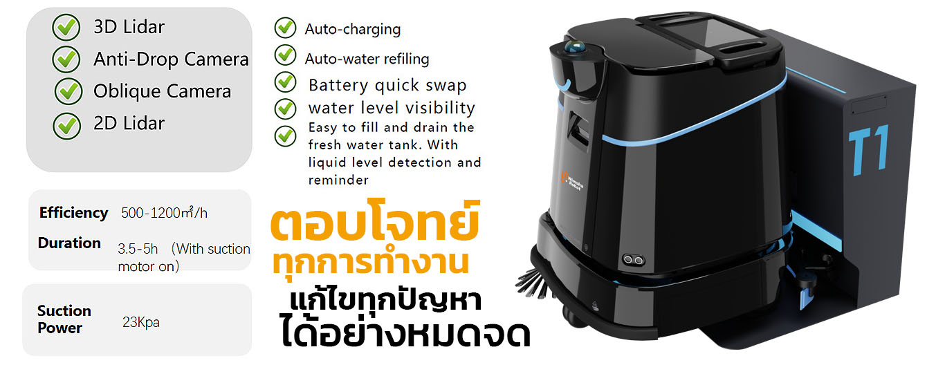 สะอาดเต็มประสิทธิภาพ หุ่นยนต์ทำความสะอาด Wimsha Robot รุ่น T1